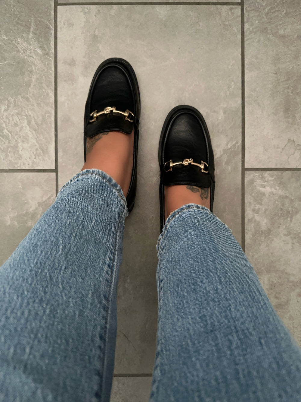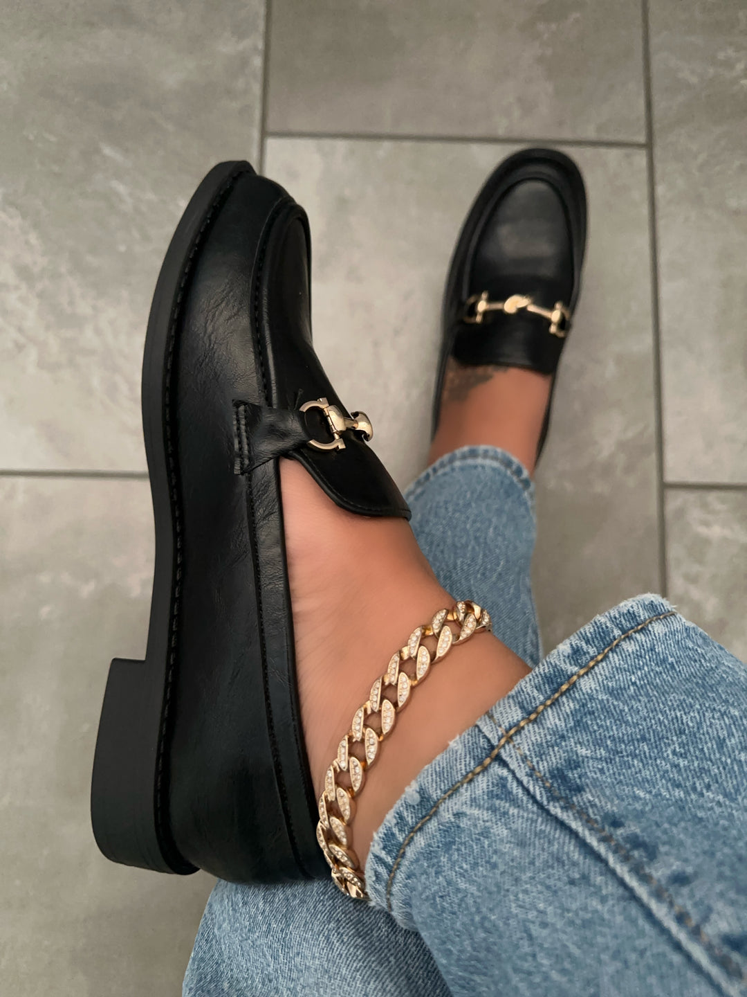 Classic Black Faux Leather Horsebit Loafers- Carolina