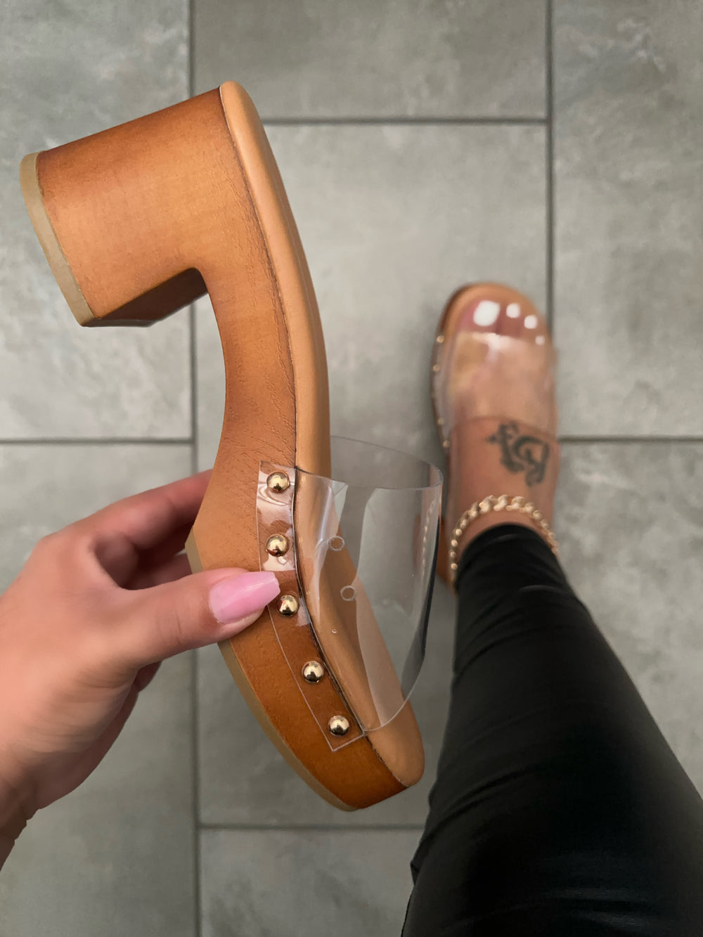 Clear Strap Studded Mule Platform Block Heel Sandals-Aspen