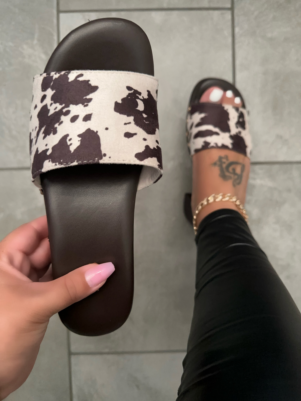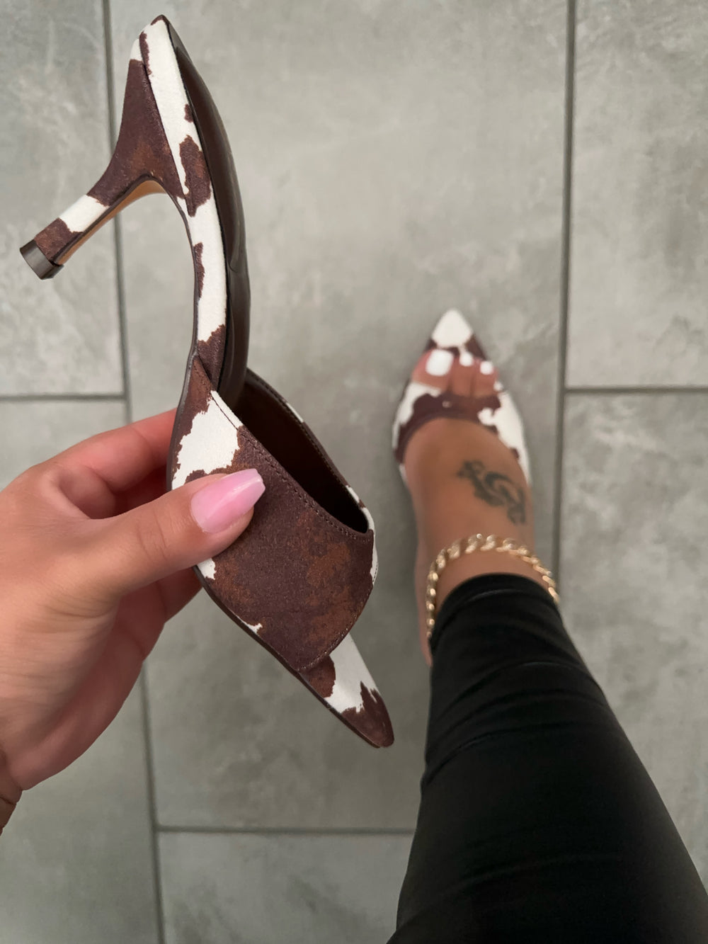 Cow Print Kitten Heel Mules – Western Chic Slip-On Statement Heels- Dakota