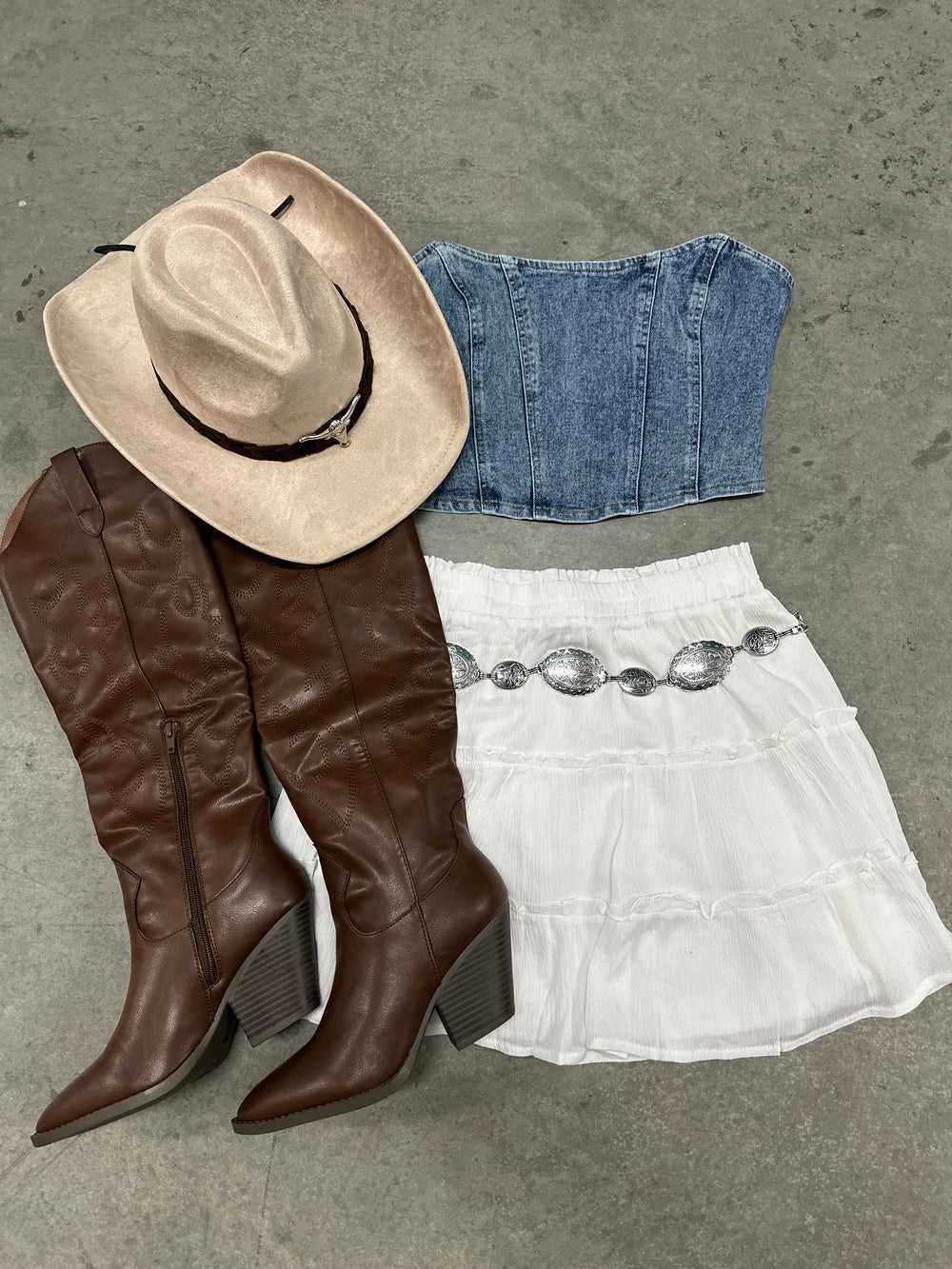 Western Brown Faux Leather Embroidered Corset Top